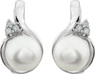 14K White Cultured White Freshwater Pearl & .08 CTW Natural Diamond Earrings