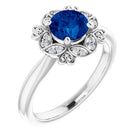 14K White Lab-Grown Blue Sapphire & .04 CTW Natural Diamond Ring