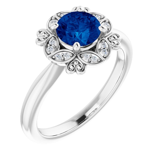 - Description: Lab-Grown Blue Sapphire And .04 CTW Natural Diamond Ring