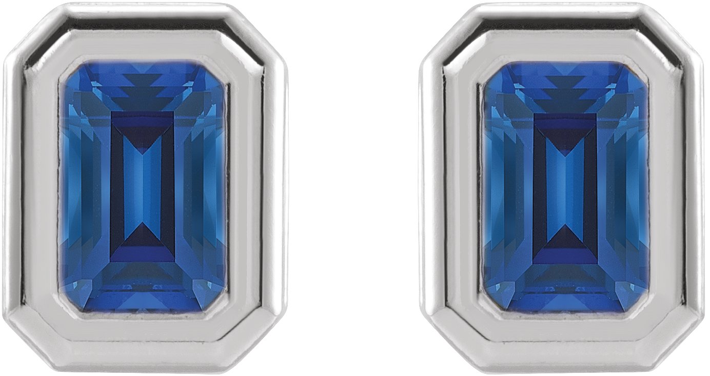 - Description: Lab-Grown Blue Sapphire Solitaire Bezel-Set Earrings