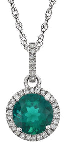 14K White Lab-Grown Emerald & 1/10 CTW Natural Diamond 18" Necklace