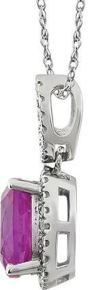 14K White Lab-Grown Pink Sapphire & .03 CTW Natural Diamond 18" Necklace
