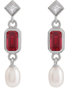 - Description: Lab-Grown Ruby And .05 CTW Natural Diamond And Cultured Pearl Dangle Earrings