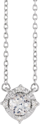 14K White Lab-Grown White Sapphire & .04 CTW Natural Diamond Halo-Style 18" Necklace