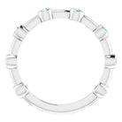 14K White Natural Blue Zircon Bezel-Set Bar Ring