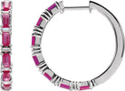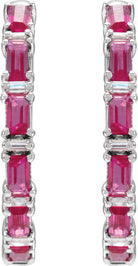 14K White Natural Ruby & 1 1/4 Natural Diamond Hoop Earrings