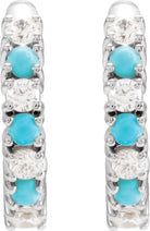 14K White Natural Turquoise & 1/3 CTW Natural Diamond Hoop Earrings