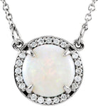 14K White Natural White Opal & .05 CTW Natural Diamond 16" Necklace