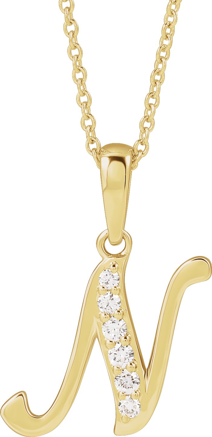 14K Yellow 1/10 CTW Natural Diamond Initial N 18" Necklace