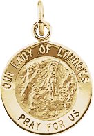 14K Yellow 12 mm Round Our Lady of Lourdes Medal