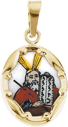 14K Yellow 13x10 mm Moses Hand-Painted Porcelain Medal
