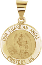 14K Yellow 15 mm Round Hollow Guardian Angel Medal