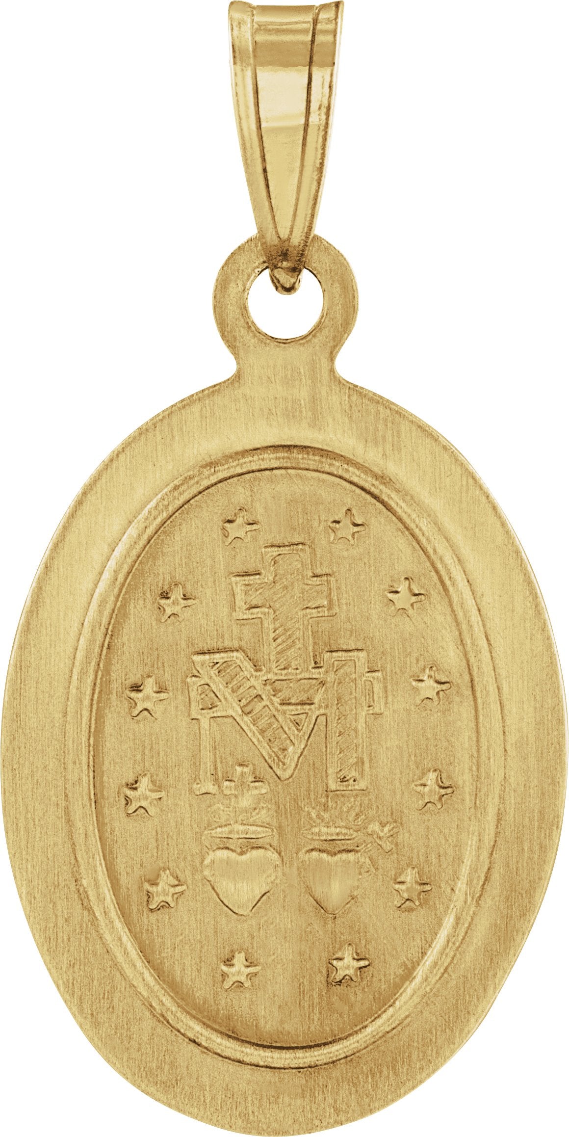 14K Yellow 15x11.5 mm Oval Hollow Miraculous Medal