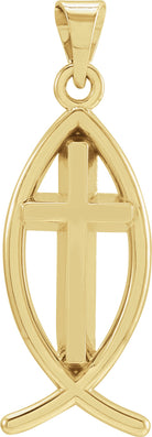 14K Yellow 19x9 mm Fish with Cross Pendant