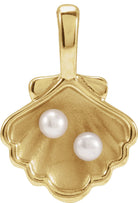 14K Yellow 2-Stone Cultured White Seed Pearl Family Shell Pendant