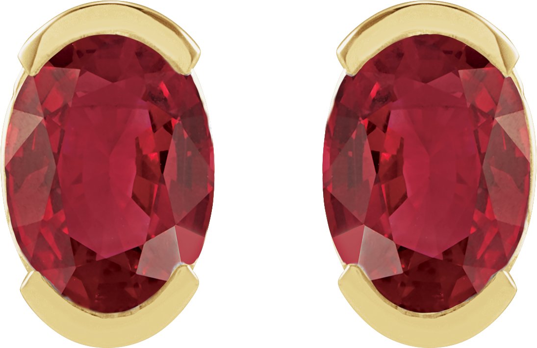 14K Yellow 6x4 mm Lab-Grown Ruby Stud Earrings