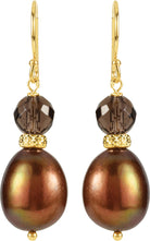 14K Yellow Cultured Chocolate Freshwater Pearl & Natural Smoky Quartz Earrings