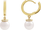 14K Yellow Cultured White Akoya Pearl & .07 CTW Natural Diamond Hinged 14.2 mm Hoop Earrings