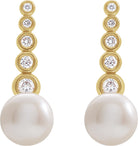 14K Yellow Cultured White Freshwater Pearl & 1/8 CTW Natural Diamond Earrings
