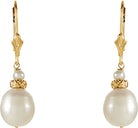 14K Yellow Cultured White Freshwater Pearl Earrings