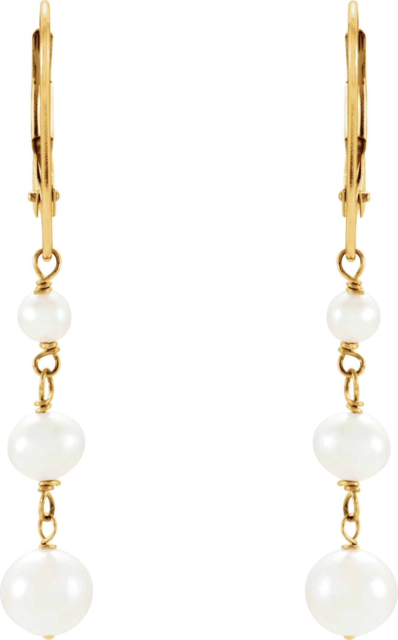 14K Yellow Cultured White Freshwater Pearl Earrings