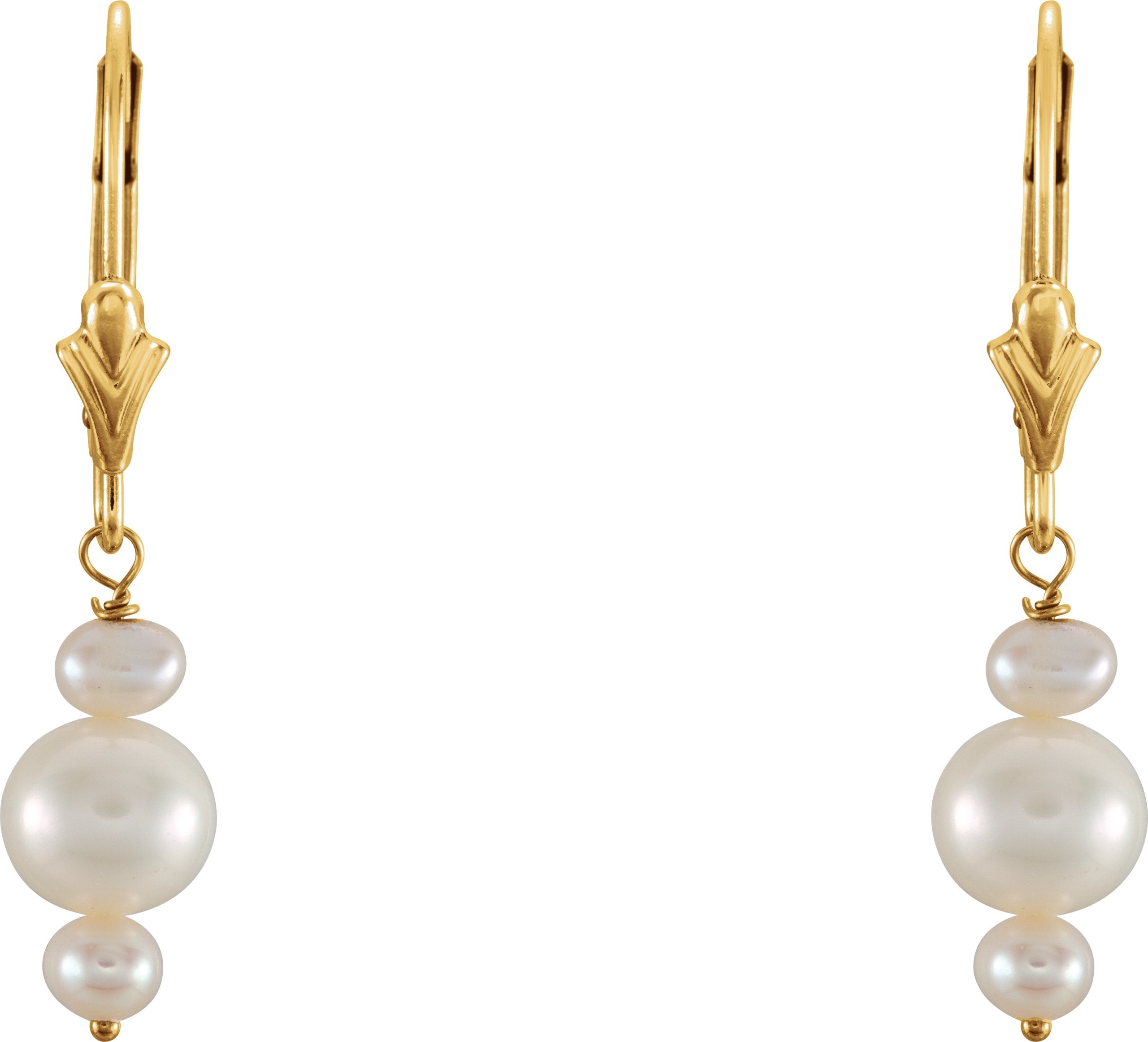 14K Yellow Cultured White Freshwater Pearl Earrings