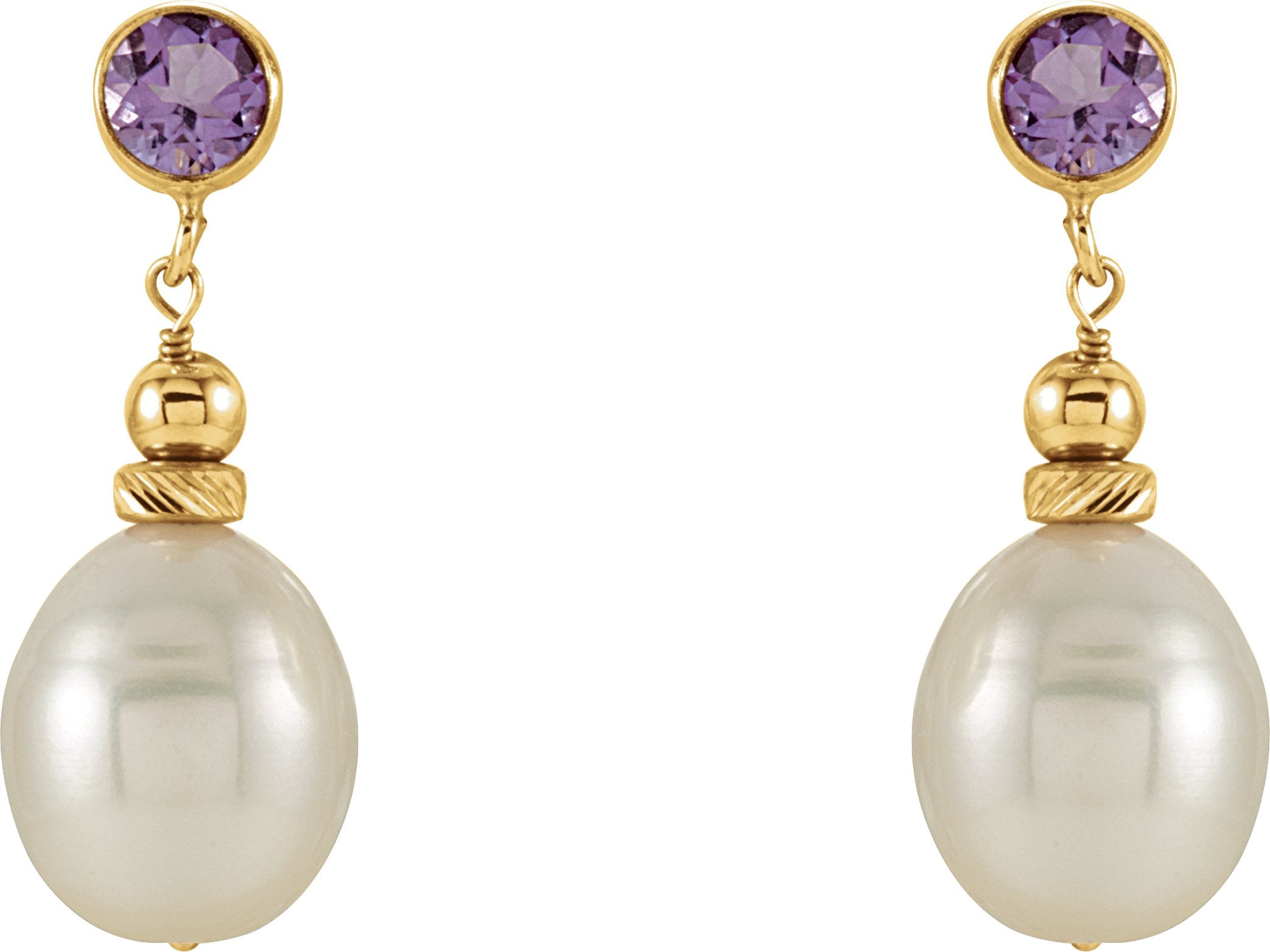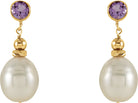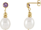 14K Yellow Cultured White Freshwater Pearl & Natural Amethyst Earrings
