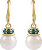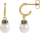 14K Yellow Cultured White Freshwater Pearl & Natural London Blue Topaz Hoop Earrings