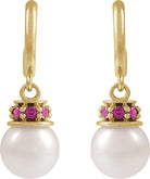 14K Yellow Cultured White Freshwater Pearl & Natural Pink Tourmaline Hoop Earrings