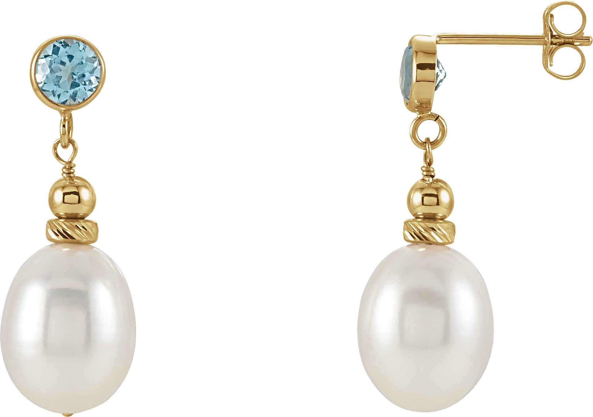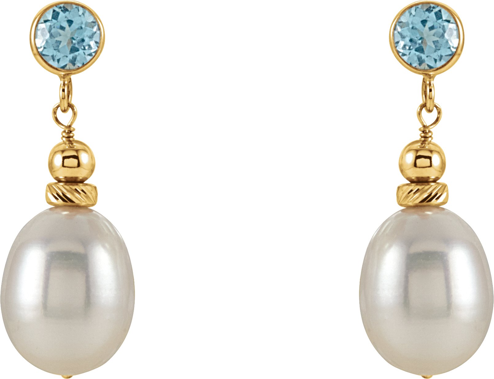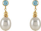 14K Yellow Cultured White Freshwater Pearl & Natural Swiss Blue Topaz Earrings