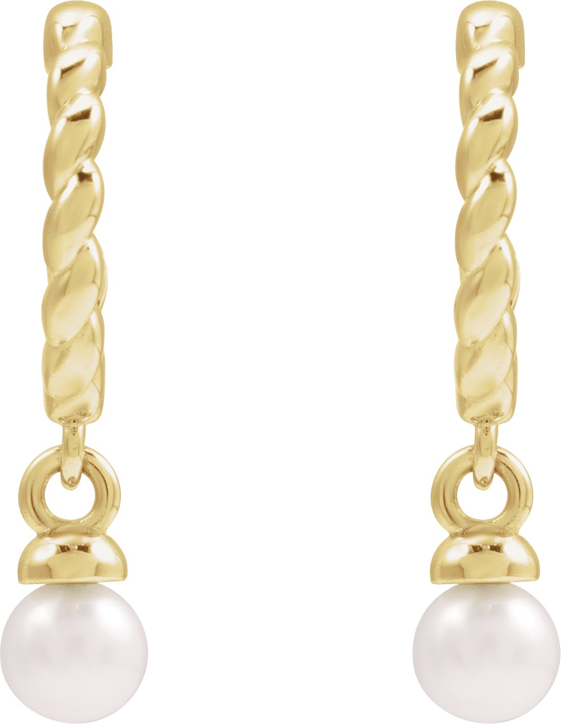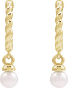 14K Yellow Cultured White Freshwater Pearl Rope Hoop Earrings