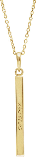 14K Yellow Engravable Four-Sided Bar 16-18" Necklace