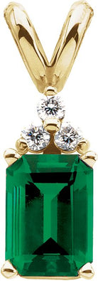 14K Yellow Lab-Grown Emerald & .05 CTW Natural Diamond Pendant