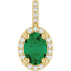 14K Yellow Lab-Grown Emerald & .07 CTW Natural Diamond Halo-Style Pendant
