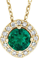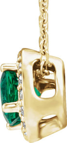 14K Yellow Lab-Grown Emerald & .08 CTW Natural Diamond 18" Necklace