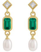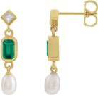 - Description: Lab-Grown Emerald And .05 CTW Natural Diamond And Cultured Pearl Dangle Earrings