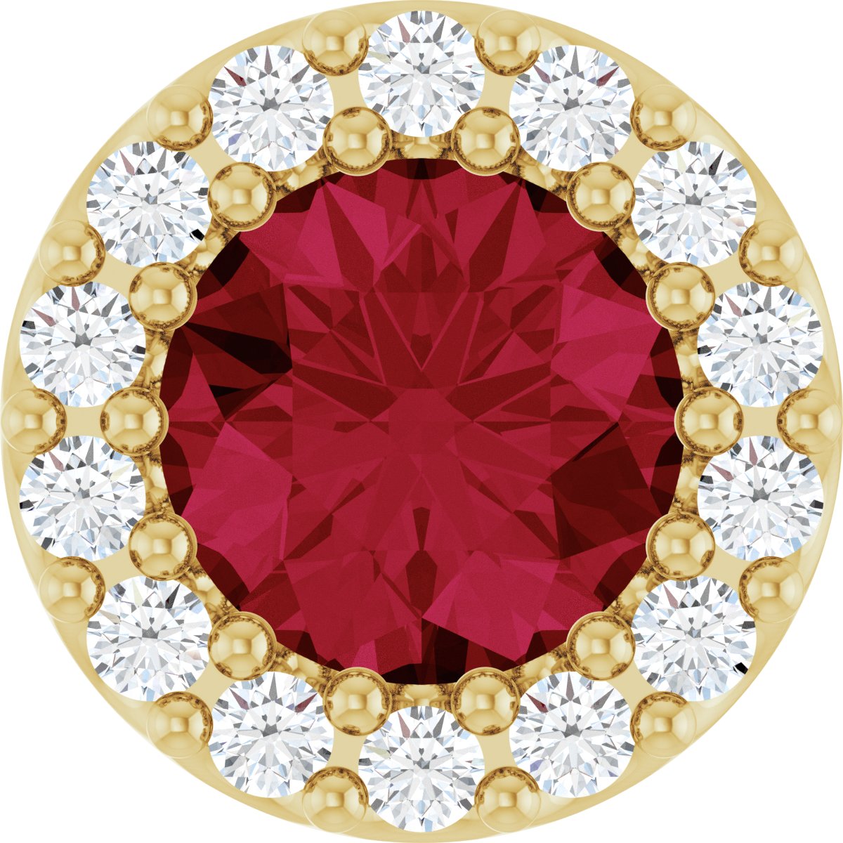 14K Yellow Lab-Grown Ruby & 1/10 CT Natural Diamond Halo-Style Pendant