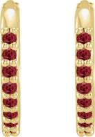 14K Yellow Lab-Grown Ruby Hinged 12.5 mm Hoop Earrings