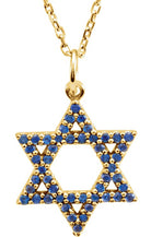 14K Yellow Natural Blue Sapphire Star of David 16" Necklace