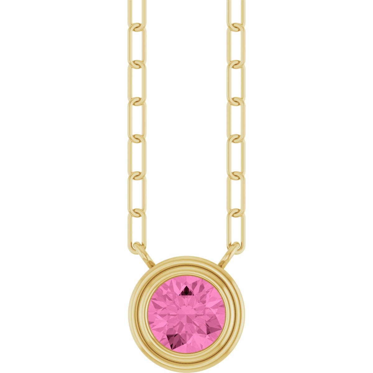 • Description: Natural Pink Sapphire Bezel-Set Necklace
