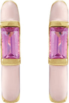 14K Yellow Natural Pink Tourmaline & Pink Enamel Hinged 11 mm Hoop Earrings