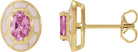 14K Yellow Natural Pink Tourmaline & Pink Enamel Stud Earrings