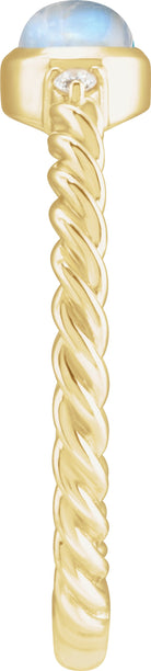 - Description: Natural Rainbow Moonstone Cabochon And .03 CTW Natural Diamond Rope Ring