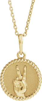 14K Yellow Peace Sign Language 16-18" Necklace