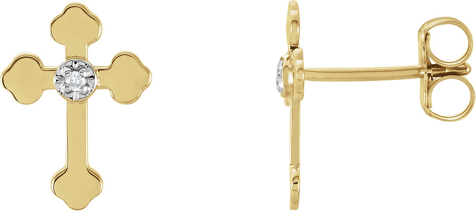 14K Yellow/White .01 CTW Natural Diamond Cross Earrings