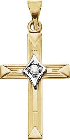 14K Yellow/White .025 CT Natural Diamond Cross Pendant