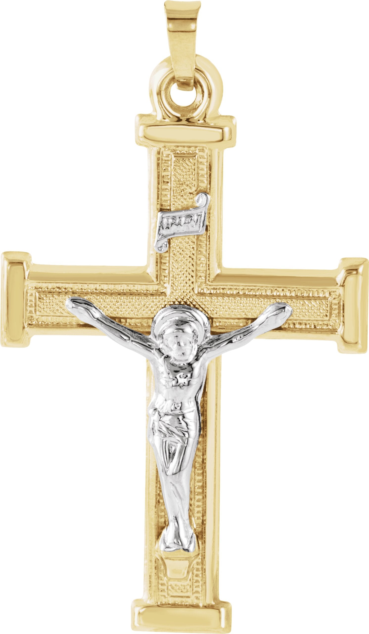 14K Yellow/White 32x23 mm Hollow Crucifix Pendant