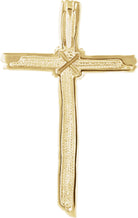 14K Yellow Woodgrain Cross Pendant