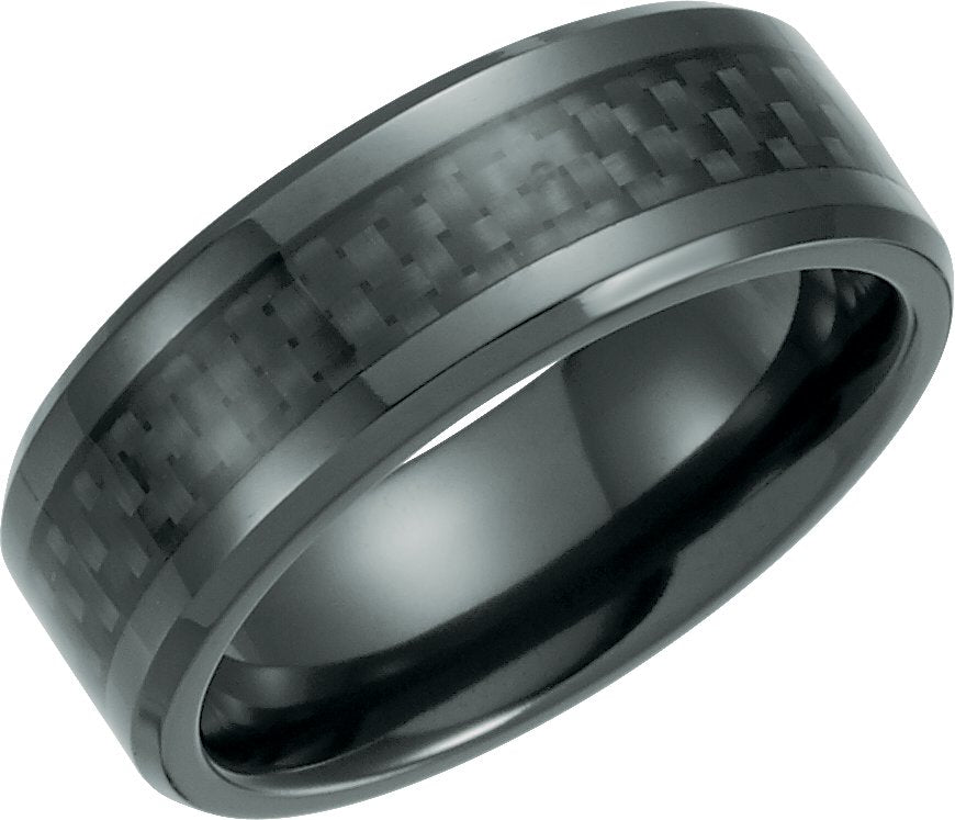 Black Titanium 8 mm Beveled-Edge Carbon Fiber Inlay Band Size 12