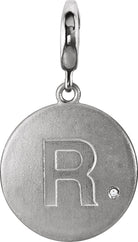 Sterling Silver .005 CT Natural Diamond Initial R Charm/Pendant